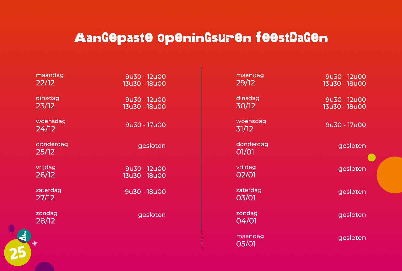 Verlof: Van 1 tot en met 5 januari. Terug open op 6 januari 2026.